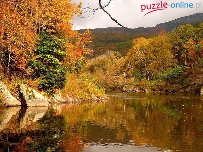 Puzzle Kolorowe, Rzeka, Drzewa, Liście