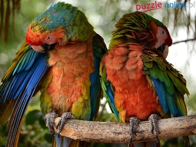 Puzzle Kolorowe, Gałąź, Dwie, Papugi
