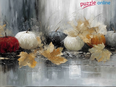 Puzzle Liście, Kolorowe, Dynie, Grafika AI