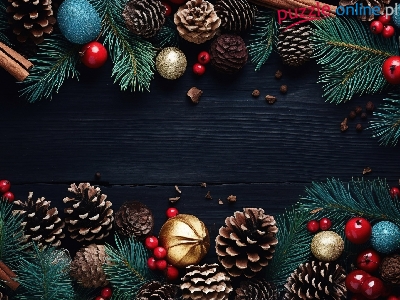 Kolorowe, Gałązki, Boże Narodzenie, Szyszki, Bombki, Ciemne, Tło, Jagody, Cynamon