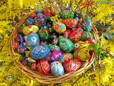 Kolorowe, Forsycja, Wielkanoc, Kosz, Pisanki