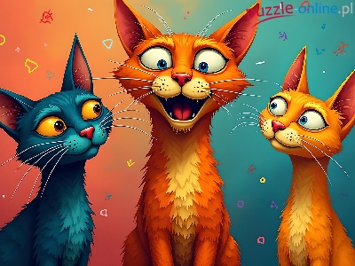Trzy, Kolorowe, Koty, Grafika, Tło