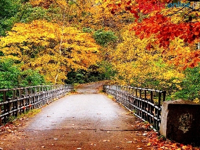 Kolorowe, Jesień, Mostek, Las, Drzewa
