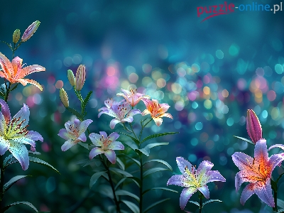 Puzzle Bokeh, Kolorowe, Lilie, Grafika AI