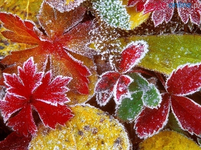 Liście, Kolorowe, Mróz