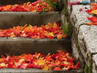 Puzzle Liście, Kolorowe, Schody