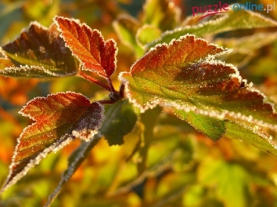 Puzzle Liście, Kolorowe, Szron