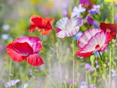 Mak, Czerwony, Pąki Maki, Łąka Maki, Łąka, Ostróżki Niebieskie, Maki Czerwone, Błękitne, Niebo, Maki Maki, Kwiaty Makowe, Pola, Kwiaty Maczek Kalifornijski Czerwony, Mak Słońca, Promienie, Maki Czerwony, Mak Maki, Czerwone, Zboże Cztery, Maki Zboża, Łan, Maki