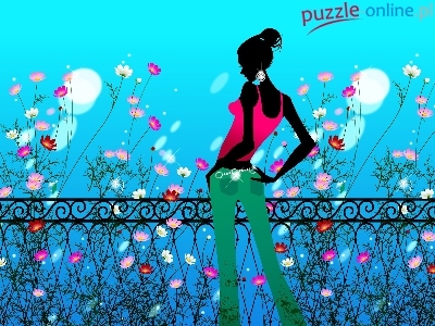 Puzzle Kolorowe, Kobieta, Ogrodzenie, Kwiaty