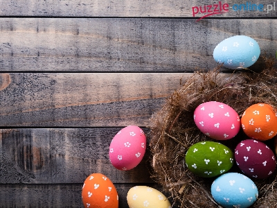 Tło, Gniazdo, Wielkanoc, Kolorowe, Deski, Pisanki
