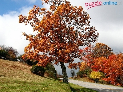 Puzzle Kolorowe, Droga, Pobocze, Drzewa