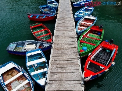 Puzzle Łódki, Przystań, Kolorowe, Molo
