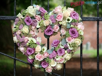 Puzzle Róże, Kolorowe, Serduszko