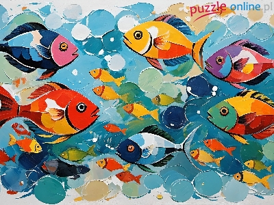 Puzzle Ryby, Kolorowe, Rybki, Grafika AI