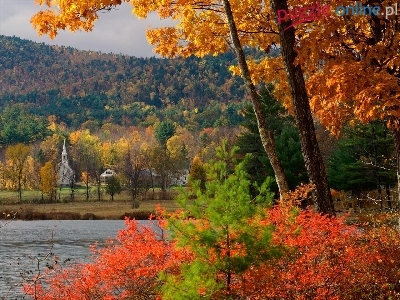 Kolorowe, Drzewa, Kościółek, Rzeka, Jesienne