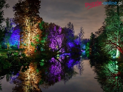 Kolorowe, Zmierzch, Park, Staw, Światła