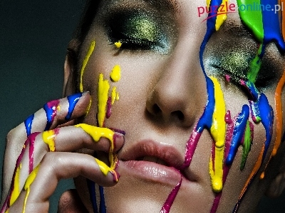Puzzle Kolorowe, Kobieta, Twarz, Farbki