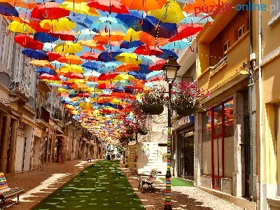 Puzzle Kolorowe, Miasto, Ulica, Parasolki