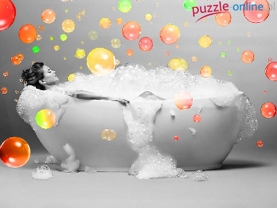 Puzzle Kolorowe, Kobieta, Wanna, Bańki