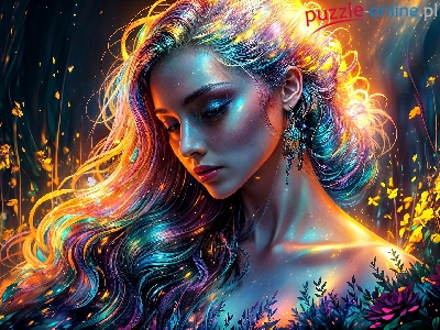 Światło, Dziewczyna, Kobieta, Kolorowe, Grafika, Włosy
