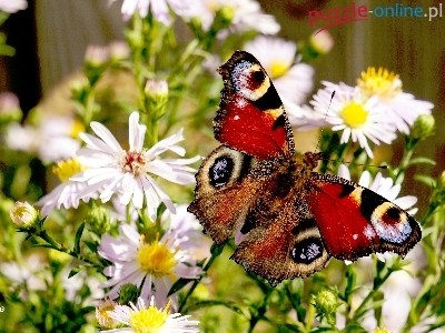 Kolorowy, Rusałka pawik, Kwiaty, Astry, Motyl