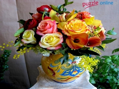 Puzzle Kolorowy, Bukiet, Kwiatów, Wazon