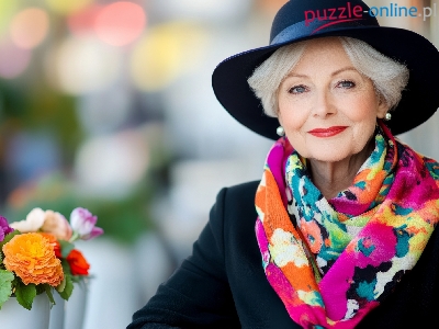 Kapelusz, Uśmiech, Kobieta, Kolorowy, Kwiaty, Szalik