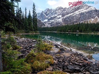 Kolumbia Brytyjska, Jezioro O’Hara, Åšwierki, Góry Canadian Rockies, Kanada, Park Narodowy Yoho, Kamienie