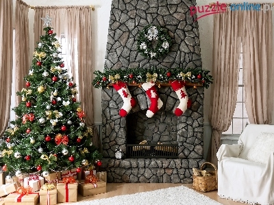 Choinka, Kominek, Boże Narodzenie, Pokój, Fotel, Prezenty