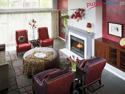Kominek, Stolik, Kwiaty, Pokój, Fotele, Obrazy