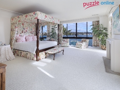 Puzzle Łóżko, Sypialnia, Kominek, Baldachim