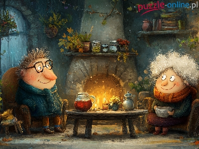 Stół, Babcia, Ubranie, Grafika AI, Ciepłe, Dziadek, Kominek