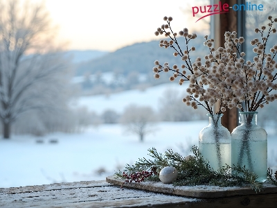 Bombka, Zima, Gałązka, Kompozycja, Rośliny, Wazony, Szyszka