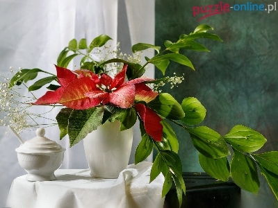 Puzzle Kompozycja, Wazon, Stolik, Gwiazda betlejemska
