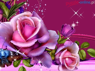 Puzzle Kompozycja, Purpurowe, Róże, Art