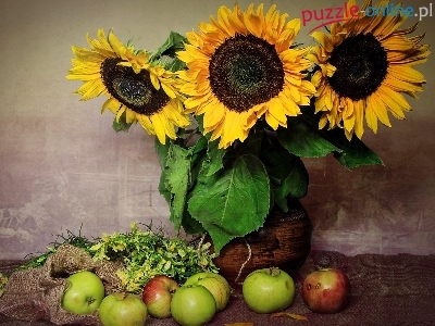Puzzle Słoneczniki, Kompozycja, Jabłka