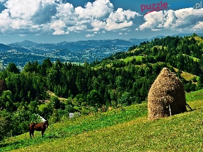 Koń, Lasy, Siana, Góry, Łąka, Stóg