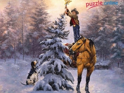 Koń, Gwiazda, Ośnieżona, Choinka, Chłopiec