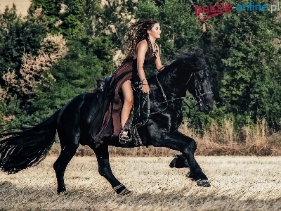 Koń, Drzewa, Kobieta, Kary, Pole