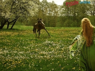 Puzzle Łąka, Kobieta, Koń, Przyjażń