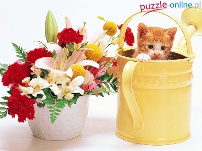 Konewka, Kwiatów, Mały, Kociak, Bukiet