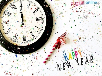 Puzzle Konfetti, Zegar, Północ, Nowy Rok
