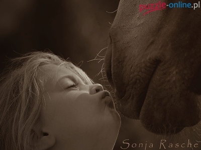 Puzzle Konia, Dziewczynka, Pysk, Pocałunek