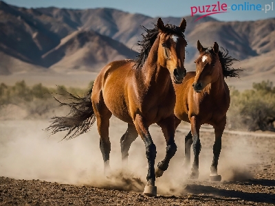 Dwa, Konie, Gniade, Góry, Kurz