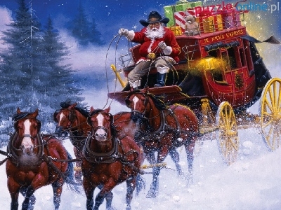 Konie, Prezenty, Mikołaj, Powóz, Śnieg