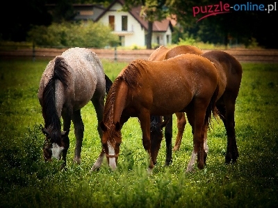 Puzzle Konie, Pasące, Się, Łąka