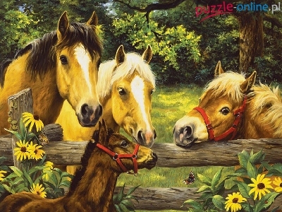 Puzzle Źrebak, Trzy, Konie, Obraz