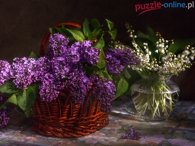 Bez, Konwalia majowa, Wazon, Bukiety, Fioletowy, Kosz