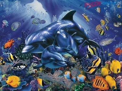 Koralowa, Ocean, Delfiny, Rafa, Ryby