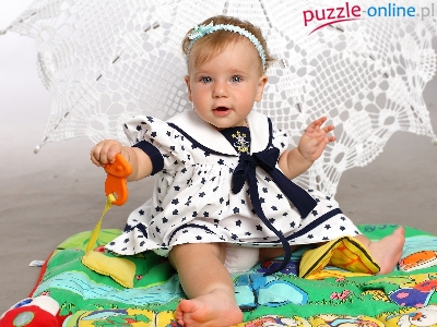 Koronkowa, Zabawki, Radosna, Dziewczynka, Parasolka